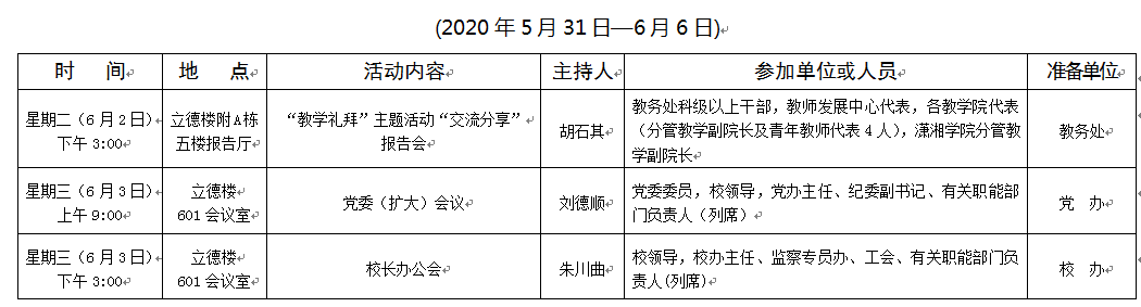 2019-2020学年第二学期第十五周会议安排表